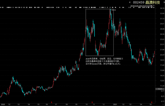 从三人在晶澳科技上的持仓看,买在了阶段高点,但持仓时间非常短,又错过了随后的大涨,一来一去,光打酱油看戏了,完美错过2021年5月至11月区间250%的涨幅。