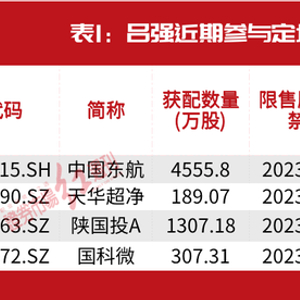 目前来看,吕强参与定增的上述公司均处于浮盈状态,如中国东航目前的收盘价相比发行价上涨26.65%,天华超净、陕国投A上涨超10%,国科微上涨达30%(见表1)。
