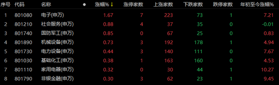 传媒、综合、医药生物、食品饮料、商贸零售板块跌幅约为1%。
