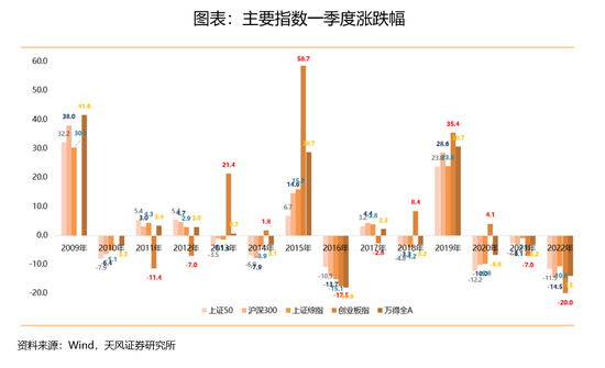 投资者很关心和期待春季开门红行情,甚至起名为“春季躁动”,给大多数投资者的印象是Q1如果都不好,全年机会都不大。但是这种固化的印象和历史的情况有些差别,投资者不能过于依赖这个经验,具体情况应该具体对待。