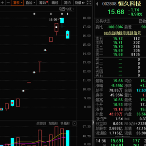 集信创、军工、数字经济等多个概念于一身,股价近期连续8涨停的业绩预亏股恒久科技今日跌停,股价收报15.68元/股,总市值42.15亿元。