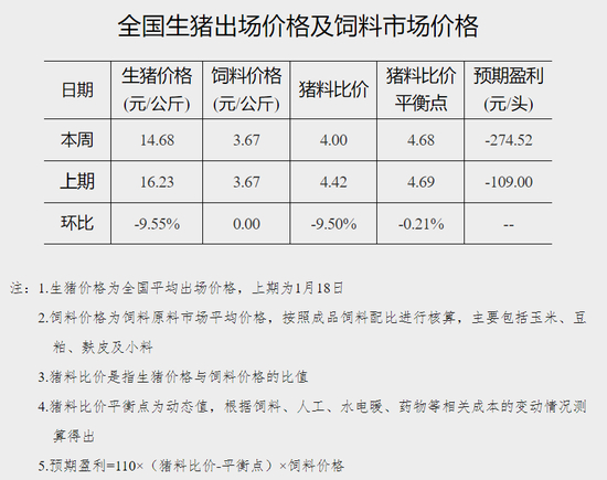 同日,据国家发改委价格监测中心网站消息,截至2023年2月1日当周,全国猪料比价为4.00,较春节前(1月18日)下降9.50%。