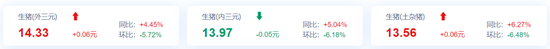 另外,据中国养猪网数据,2月6日,全国外三元生猪均价为14.33元/公斤,猪价较昨日上涨了0.06元/公斤,环比下跌5.72%,同比上涨4.45%;全国内三元生猪均价为13.97元/公斤,猪价较昨日下跌了0.05元/公斤,环比下跌6.18%,同比上涨5.04%;全国土杂猪均价为13.56元/公斤,猪价较昨日上涨了0.06元/公斤,环比下跌6.48%,同比上涨6.27%。