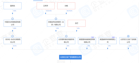 股权穿透显示,时之尚的大股东为《时尚》杂志社,由国务院下属中国文化传媒集团有限公司全资持股,主管部门为文旅部。