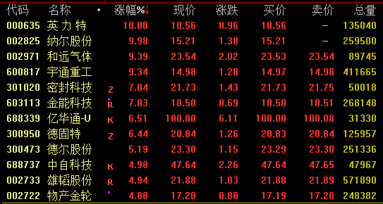 氢能源概念盘中强势拉升,截至收盘,英力特、纳尔股份涨停,和远气体涨超9%,密封科技、金能科技涨超7%,亿华通、德固特涨超6%。