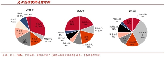 随着新能源产业的逐步渗透,高性能磁材消费结构也将发生较大变化。据中泰证券预测,2025年新能源汽车领域消费占比将达到34%左右,较当下仍具有较大提升空间。此外,风电、工业电机和人形机器人等也将进一步带动上游需求。