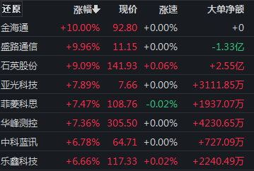 芯片半导体板块震荡回升,金海通、盛路通信涨停,新益昌大涨超14%,亚光科技、中科蓝讯、复旦微电等涨超5%。