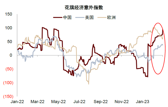 近期公布的数据显示美国增长和通胀韧性较强,2月美国综合PMI回升至荣枯线上方,经济意外指数也显示欧美经济2月超预期增长,同时,欧美1月欧美通胀环比再次抬头,较强的经济韧性可能导致美联储短期继续保持紧缩。