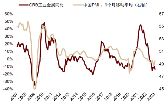 图表:中国PMI与工业商品指数正相关