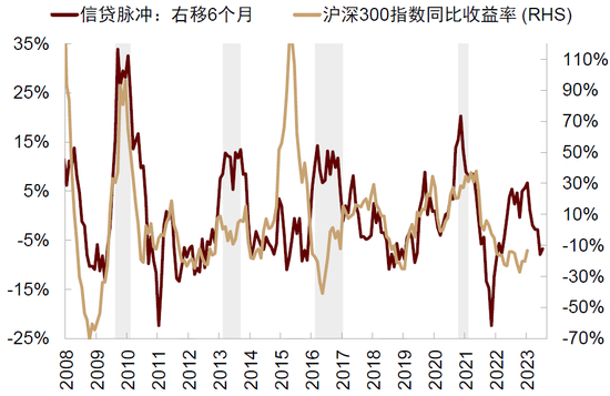 图表:信贷脉冲领先沪深300指数6个月左右