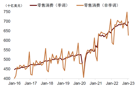 图表:零售消费季调也高于非季调数据约700亿美元