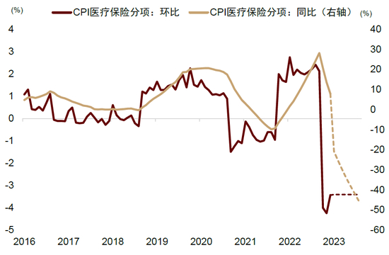 图表:我们预计医疗服务通胀未来10个月环比维持负值