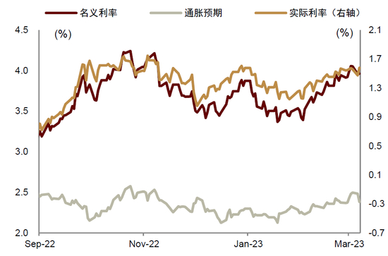 图表:美债利率变动更多由实际利率驱动,通胀预期保持相对稳定