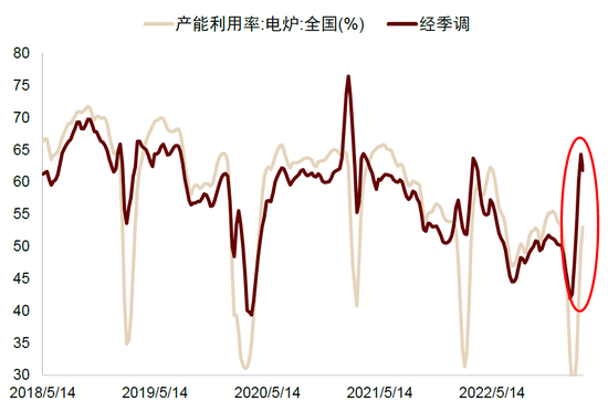 图表:电炉产能利用率近期快速上行