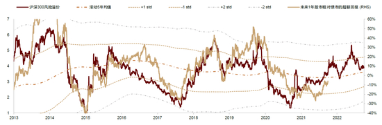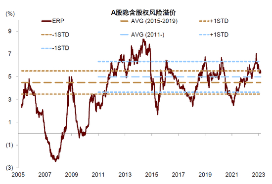 图表:股权风险溢价高于2011年以来均值水平