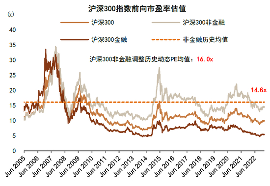 图表:A股非金融估值低于历史均值