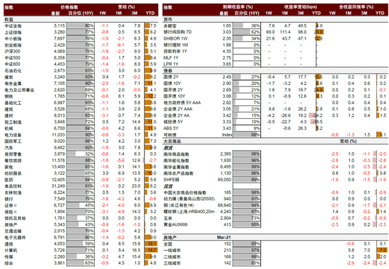 随着1-2月官方经济数据陆续公布,可能支持国内股票相对债券优势扩大,中国资产相对海外资产优势增大。我们建议维持超配A股和港股,结构上短期关注经济修复主线和政策支持的细分成长板块,如泛消费、数字经济等。与此同时,我们也提示3月美国数据与美联储政策或造成一定资产价格震动,建议灵活控制仓位(详见后文分析)。
