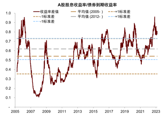 图表:股债内在回报率比值明显高于均值水平,反映股票吸引力提升