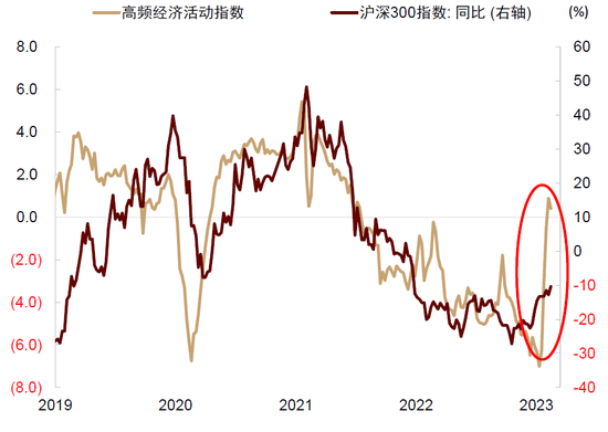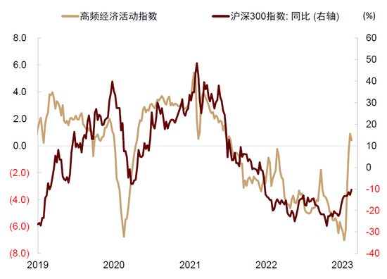 图表:高频经济活动指数与国内股市同向变动