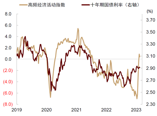 图表:高频经济活动指数与十年期国债利率同向变动