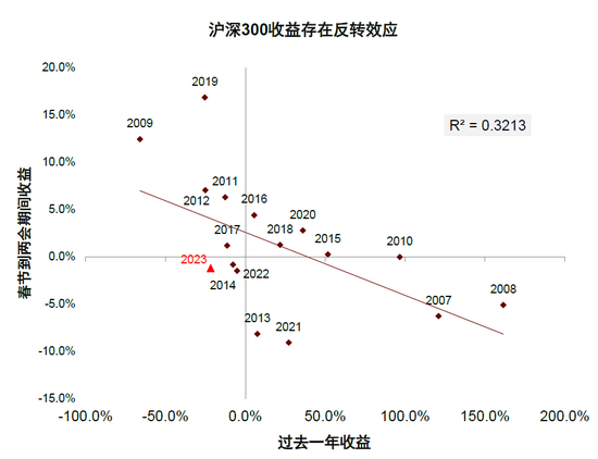 图表:2023年春节到两会期间股市走势弱于往年平均水平