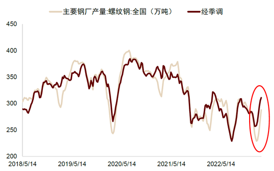 图表:螺纹钢产量2月开始出现提升