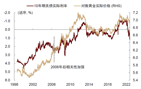 图表:黄金与美债实际利率负相关