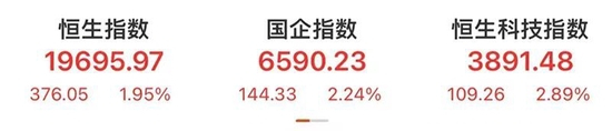 港股三大指数高开高走,截至收盘,恒生指数跳涨近400点,恒生科技指数涨2.89%。被纳入港股通标的的港股艾美疫苗一度涨幅超180%,至100港元,创上市新高,市值一度升至千亿港元。