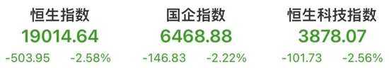 港股方面,截至发稿,恒生指数、恒生国企指数、恒生科技指数均跌超2%。恒生指数盘中失守19000点。