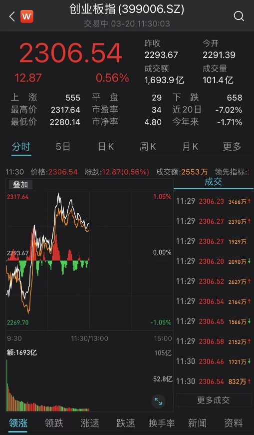 上午市场对利好反应一般,不过创业板指盘中强势拉升,一度涨超1%,引人关注。