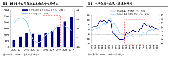 公募持仓此消彼长,增配白酒的背后是基本面反转叠加低估低配。从基本面看,15-16年起,在消费升级+份额集中驱动下,白酒行业开始进入复苏周期,基本面温和反转的趋势逐渐确立。15年申万白酒行业营业收入为1126亿元,同比增长5.9%,结束了连续两年的下滑状况。16年白酒更是实现营业收入1293亿元,同比增速上升至13.6%,反转趋势进一步巩固,白酒行业上市公司营业收入已经超过12年巅峰时期的水平。与此同时,2016年一季度开始,五粮液、洋河、古井、酒鬼酒、山西汾酒、顺鑫农业等多家公司相继上调出厂价格,掀起了行业久违的涨价潮。白酒行业企业盈利开始修复,申万白酒ROE在16Q1见底19.1%,随后上升至18年25%以上。从市场面看,当时白酒低估低配。估值方面,16年初时申万白酒PE(TTM)为18倍,明显低于05-15年PE均值的32倍,处05年以来从低到高25%分位,安全边际高。基金配置方面,15Q4基金重仓股中白酒行业市值占比仅1.3%,低于05-15年间均值的6.3%;相对自由流通市值超配比例为0.8个百分点,同样低于05-15年间均值的4个百分点,存在较大的增配空间。随着白酒行业景气度逐步回暖,业绩逐渐释放,低估低配的白酒迎来公募基金的明显增持。伴随着基金加大对白酒的配置力度,白酒行业相对市场取得明显超额收益,16-20年申万白酒指数累计涨幅达653%,同期万得全A指数为9.6%。