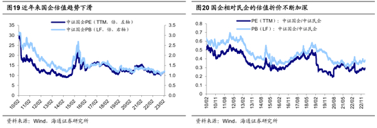 行业配置上,数字经济为代表的TMT是全年主线,并重视“中特估值体系”。我们从去年底年度策略《旭日初升——2023年中国资本市场展望-20221203》就一直把数字经济作为第一主线,逻辑在于政策和技术的双轮驱动,TMT基本面更优,基金增持或正在途中。除了数字经济之外,“中特估值”也值得重视,有望成为今年投资的次主线。目前A股央国企的估值依然不高,目前(截至2023/3/24,下同)中证民企指数PE(TTM,下同)为39倍,中证国企指数PE仅为12倍。未来随着政策持续发力以及评估体系更加完善,A股央国企依然有较大的投资机会。