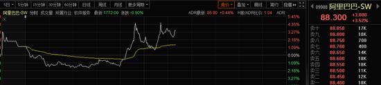 受此消息刺激,今天午后,A股市场阿里概念股全线发力。创业黑马、光云科技均涨超10%,数据港、浙大网新、翱捷科技等个股跟涨。阿里巴巴、阿里健康等股票也大幅反攻。