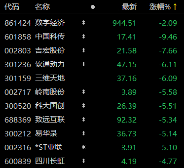 数字经济概念跌幅排名