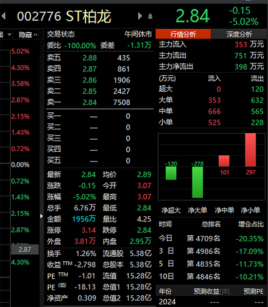 今日早盘,ST柏龙股价跌停,胜利精密差一分钱股价跌停,和科达跌超8%。