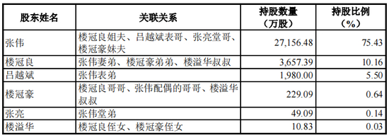 截至招股说明书签署日,厦门布鲁克持有公司80.00%的股份,为公司控股股东。张伟、楼冠良控制的厦门布鲁克持有公司80%的股份;厦门布鲁克控制的宁波热威持有公司10%的股份;吕越斌控制的布鲁克企管持有公司10%的股份。楼冠良任公司董事长,吕越斌任公司董事、总经理,楼冠良系张伟妻弟,吕越斌系张伟表弟。2016年5月6日,张伟、楼冠良、吕越斌签署了《共同控制协议》;2019年11月25日,张伟、楼冠良、吕越斌签署了不可撤销的《共同控制协议之补充协议》。出现意见不一致时,以张伟的意见为准。张伟、楼冠良、吕越斌为公司实际控制人。
