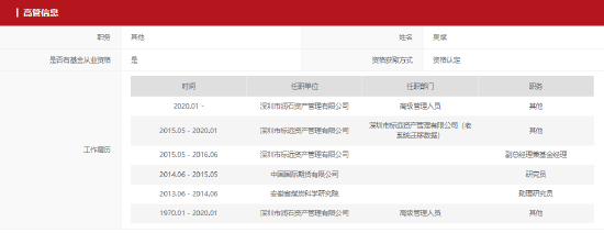 目前,润石资产的全职人员仅剩下1名。即担任“其他高管”的吴斌。备案信息显示,他此前任职于深圳市标远资产管理有限公司(简称:标远资产)。而标远资产在2020年因失联被中基协注销私募资质。
