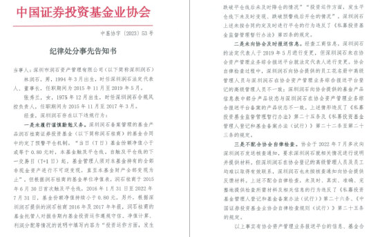 为此,中基协拟取消润石资产会员资格,撤销管理人登记。时任法定代表人、董事长林润石,时任合规风控负责人张秀兰女士,因负有责任,中基协拟对其进行公开谴责。