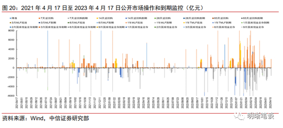 央行公告称,为维护银行体系流动性合理充裕,2023年4月17日人民银行开展1700亿元中期借贷便利(MLF)操作和200亿元公开市场逆回购操作。4月17日央行公开市场开展200亿元7天逆回购操作及1700亿元MLF操作,当日有180亿元逆回购到期和1500亿元MLF到期,实现流动性净投放220亿元。本周二到周五,共有360亿元逆回购到期和900亿元国库现金定存到期。