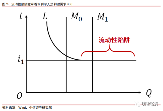 何为流动性陷阱?今年一季度以来货币供给保持高增而通缩压力反而显现,防疫优化落地后总需求回升缓慢,市场担忧我国经济面临滑入“流动性陷阱”的风险。综合学术界主要观点,流动性陷阱意味着极低利率环境中货币增加对总需求的刺激作用失效。在利率接近0时,公众预期未来利率上行而货币政策收紧,因此并不会增加投资,货币政策提供的货币增量无法刺激经济增长。