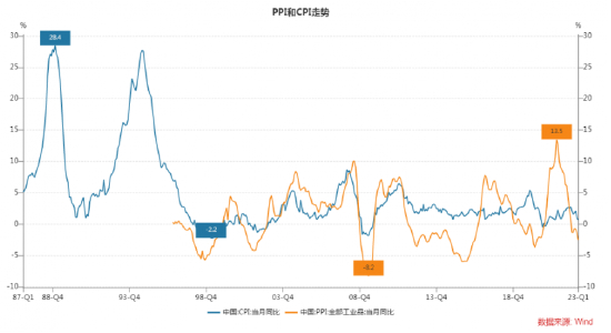 从历史上看,中国出现了两轮通缩或者“类通缩”:一是上世纪末和本世纪初(1997年-2002年),其间CPI、PPI负增长月份累计分别为39月、51月,最低值分别为-2.2%、-5.7%,中国通过国企改革、银行改革、发行长期国债投基建、加入WTO等走出通缩;二是2012年-2016年,其间PPI连续54个月为负,最低达-5.9%,但CPI仍为正值,中国通过供给侧改革走出PPI通缩。