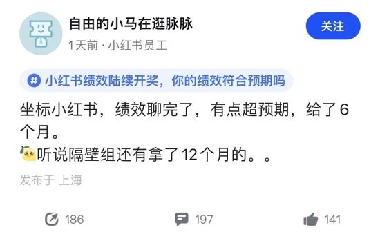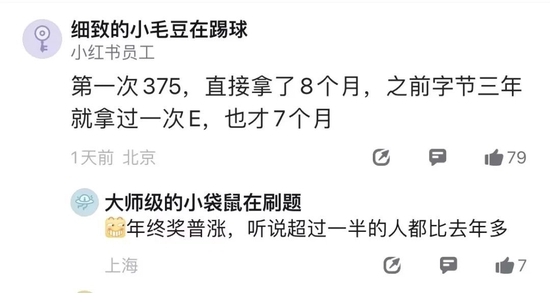 也有例外的,今年让人比较意外的是某书。社交平台上关于某书年终奖的爆料称,有员工拿到了6个月、8个月、甚至12个月的年终,比以往要多。绩效好的员工甚至可以拿到以往的三四倍。