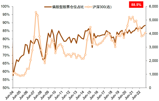 图表8:偏股型基金仓位2021年以来维持高位水平