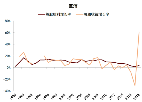 图表27:宝洁的每股股利同样维持长期的正增长
