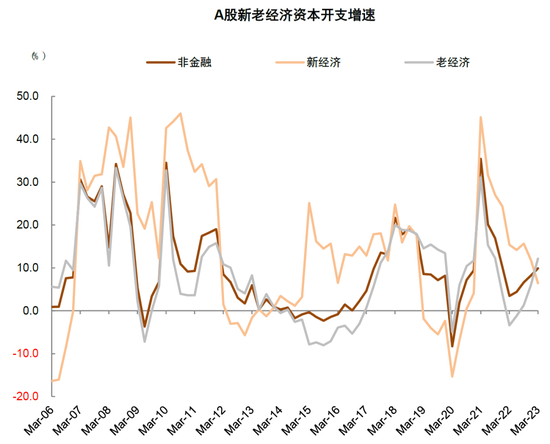 图表4:资本开支周期强弱与盈利周期强弱高度相关,当前新经济行业资本开支仍待改善