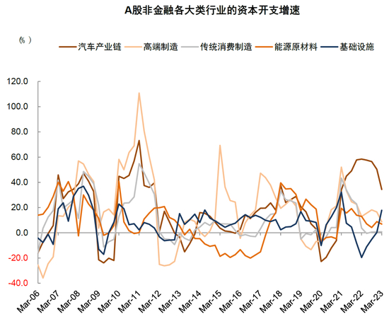 图表5:汽车产业链和高端制造的资本开支增速回落,传统消费制造的资本开支仍偏弱