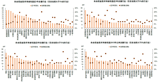 图表36:不同时间区间自由现金流明显改善的行业梳理