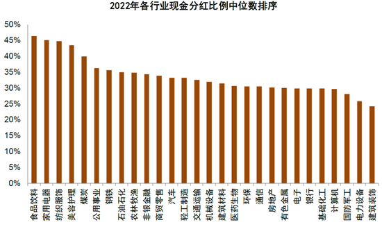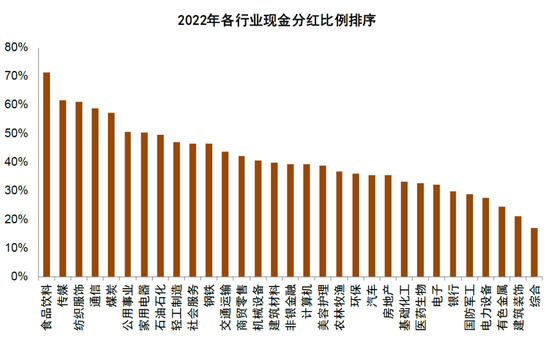 图表17:2022年高分红比例行业包括食品饮料、传媒和服装服饰等