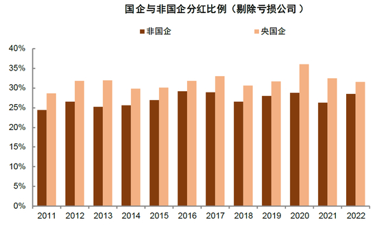 图表23:国企的分红比例长期略高于非国企