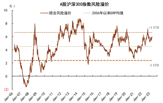 3、资产收益率预期。当前投资者对各类资产收益率预期普遍不高,呈现一定的“资产荒”特征,具体来看:1)房地产:2022年房地产周期下行后当前步入“弱复苏”阶段,但是在“房住不炒”的中期框架之下,以及担忧中长期红利消退,居民对房价收益率预期整体偏低,根据央行1Q23的储户问卷调查,尽管居民对房价预期好转,但认为“房价上涨”的比例仍处于历史低位。2)银行理财和债券:央行问卷调查显示当前居民储蓄意愿仍处于偏高水平,与此同时,银行理财收益率维持在低于2%的较低状态;债市层面,表征无风险利率的10年期国债利率收益率去年8月一度跌破2.6%,经历反弹后近期再度走低,同时各期限国债收益率均为历史偏低水平;3)股市:沪深300股权风险溢价尽管相比去年高位有所回落,但当前仍处于历史均值上方0.6倍标准差的位置,一方面反映股市具备较强的估值吸引力,但另一方面也是投资者风险偏好不高交易的结果。在市场具备一定“资产荒”特征的环境下,投资者对资产回报要求有所降低,叠加无风险利率下行,因此具备稳定分红回报的高股息资产对投资者吸引力上升。